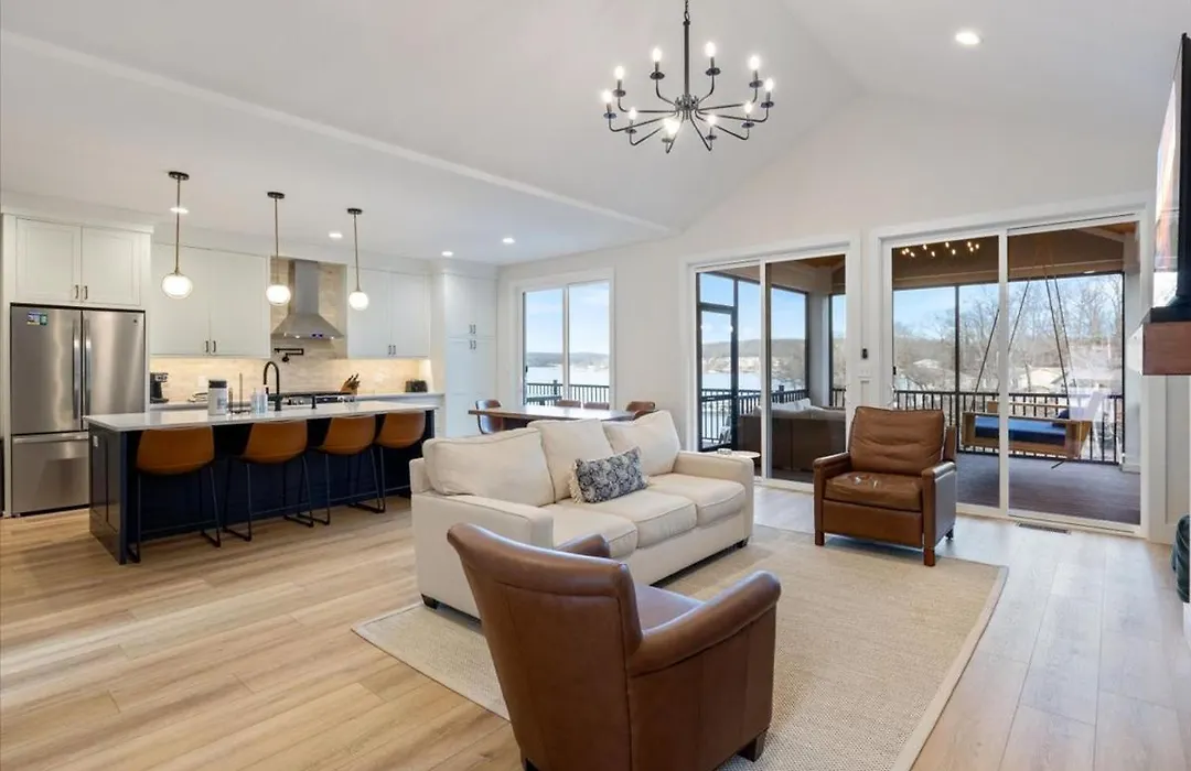 Lakefront Home W/ Arcade Games, Wet Bar, Dock, Workspace & Stunning Views features an equipped kitchen with a fridge, an oven, and kitchenware. Paradise Tropical Restaurant and Bar is a bar serving American dishes approximately a 15-minute drive from the Sunrise Beach accommodation.